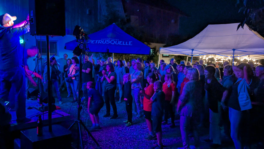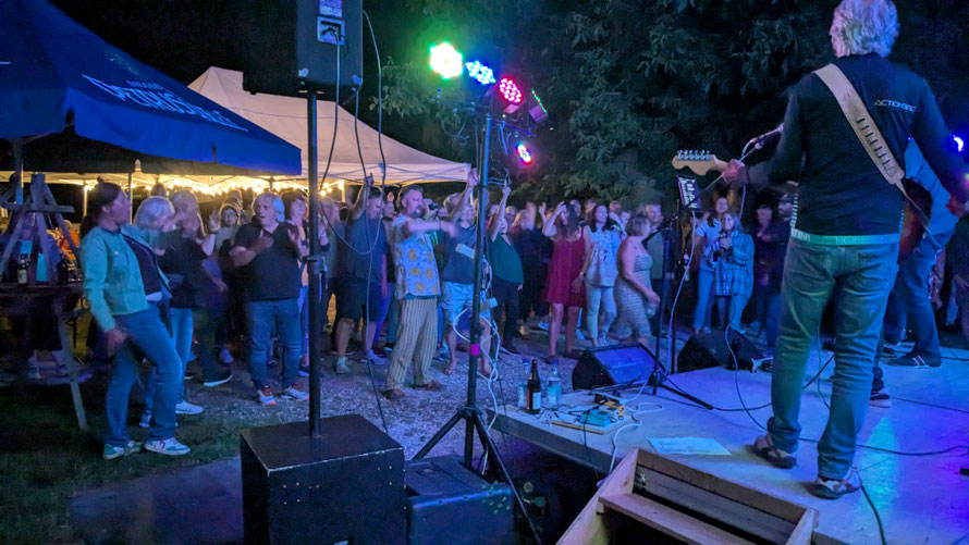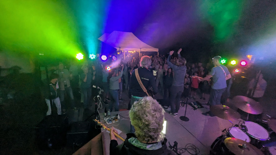 Volle Arena beim ROAS, beim Rockigen Open Air Sondermoning: Rund 400 Besucher kamen auf den Dorfplatz und vor den Großfreimaier-Hof. Die „Hurricanes“, die Chiemgauer Cover-Rock-Kultband, sorgte für beste Stimmung und einen rundherum gelungenen Sommerabend. Die fünf Oldie-Rocker spielten bis Mitternacht Oldies und Goldies, Hits und Gassenhauer aus fünf Jahrzehnten Rockmusik, von Elvis Presley und Beatles über Eagles und CCR bis Rolling Stones. Zum Showdown, als Frontmann Herbert Ringsgwandl „Rockin all over the world“ von Status Quo anstimmte, sammelten sich die überwiegend 50plus-Rockfans vor der Bühne zum Schwelgen in musikalischen Jugenderinnerungen und zum Abtanzen, Mitsingen und Klatschen. Für das Wohlbefinden der Besucher sorgte das unermüdliche Team des Förderverein Sondermoning und ließ sowohl in kulinarischer Hinsicht und was die Getränkeauswahl betraf keine Wünsche offen. Vereinschef Monika Röder freute sich über die vielen Besucher und den tollen Erfolg des Summeringer Rock-Open-Air und versprach eine Fortsetzung im nächsten Jahr. pv.