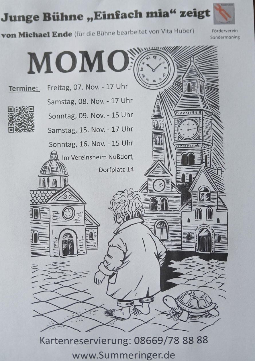 Kinder spielen Theater – für Klein und Groß! Diesmal steht MOMO (in einer Version von Vita Huber) auf dem Spielplan unserer Jungen Bühne „Einfach mia“ vom Förderverein Sondermoning. Seit dem Frühjahr proben eine Menge junger Spieler mit viel Freude und Teamgeist an dem neuen Theaterstück.