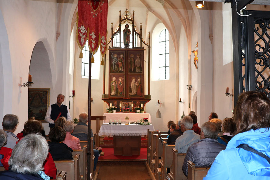 Peter Hoefeler (vorne links), Kirchenpfleger der Kirchenstiftung St. Laurentius Nußdorf, stellte mit vielen interessanten Informationen die lange Geschichte des Gotteshauses und die kunsthistorischen Kostbarkeiten vor.
