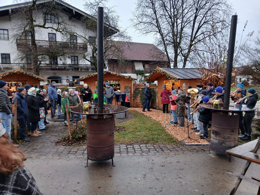 Nußdorf. Über mehrere Hundert Besucher beim zweitägigen Dorfadvent freute sich die Vorstandschaft des Förderverein Sondermoning. Auf dem Adventsmarkt auf dem Dorfplatz rund um den Dorfbrunnen tummelten sich zeitweise so viele Besucher, dass es kaum ein Durchkommen gab. An den Verkaufsständen wurde Selbstgebasteltes, Kunsthandwerk, Getöpfertes, Weihnachtsdekoration und vieles mehr angeboten, zudem kulinarische Schmankerl von selbstgebackenen Waffeln bis zu Bosna vom Grill sowie wärmender Glühwein und Punsch. Die Mitglieder des Fördervereins waren unermüdlich am Werk, um den Besuchern ein gemütliches Beisammensein zu bereiten. Eröffnet wurde der Dorfadvent von den Nachwuchsbläsern der Musikkapelle Nußdorf. In der Dorfkirche sangen und musizierten Jung und Alt zum Advent. Und das begeisterte Publikum honorierte die stimmungsvolle musikalische Stunde mit viel Applaus. Die Theaterkinder des Dorfvereins erfreuten mit einem kleinen Theaterstück und der Nikolaus beschenkte die Kinder mit prallgefüllten Säckchen. Erstmals wurde ein Mitsingstunde initiiert, bei der traditionelle Adventslieder gesungen wurden. Vereinschef Monika Röder lobte die engagierten Vereinsmitglieder, die mit viel ehrenamtlichem Einsatz zum erfolgreichen Summeringer Dorfadvent beitrugen. Der Erlös kommt sozialen und gemeinnützigen Projekten zugute, die vom rührigen Dorfverein unterstützt werden. pv.